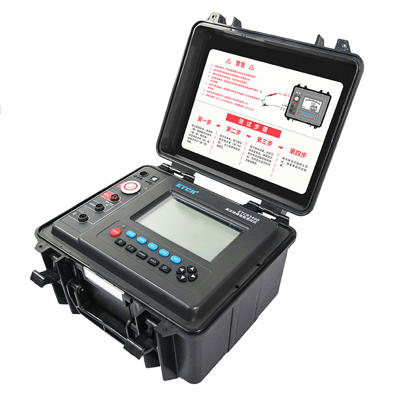 ETCR3490系列高压绝缘电阻测试仪整机美观,量程宽,精度高,分辨率高,操作便捷,携带方便,准确可靠、性能稳定,抗干扰能力强。而且具有防震、防尘、防潮结构,是电信、电力、气象、机房、油田、机电安装和维修以及利用电力作为工业动力或能源的工业企业部门常用而必不可少的仪表。适用于测量各种绝缘材料的电阻值及变压器、电机及电器设备等的绝缘电阻。